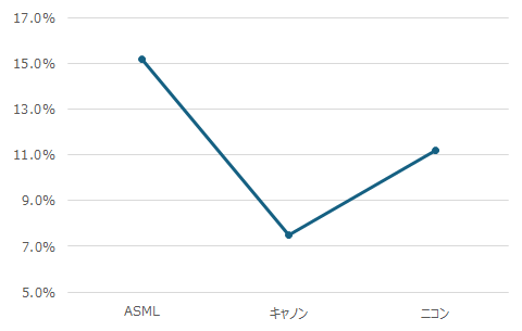 一方、競合のニコンは会社全体のR&D費が801億円、売上収益研究開発投資率が11.2%(2025年3月期)、キャノンは3,373億円、7.5%(2024年12月期)と、いずれもASMLに見劣りします。
