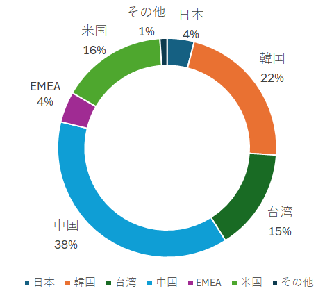 中国への輸出規制を背景に、ASMLのEUV露光装置は輸出が規制される一方、DUVは一部を除いて対象外となります。現状、先端の露光装置は輸出できないなかでも、中国はASMLの売上高の4割弱を占める最も大きな市場となっている状況です(2024年12月期)。