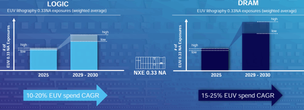 TWINSCAN EXEプラットフォームは、2026年に量産製造のサポートを開始する見込みです。主要な顧客のすべてが、NA0.55のEUV露光装置の第2世代品である「TWINSCAN EXE:5200B」システムを発注しており、今後量産に向けた動きが加速しそうです。