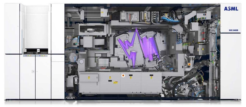 NA0.55のEUV露光装置は最小線幅8nmが可能となり、NA0.33システムと比較して1.7倍小型のトランジスタを形成でき、トランジスタ密度を2.9倍高められます。2023年末にはNA0.55の第1号機「TWINSCAN EXE:5000」をインテルに出荷しました。