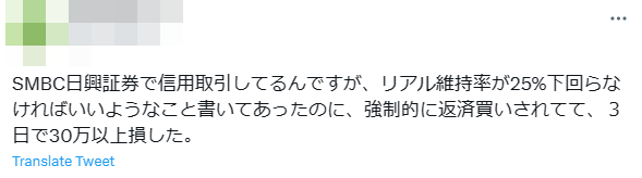 こちらの方はSNSで、強制ロスカットで30万円以上の損失を発生させてしまったと公表しています。
